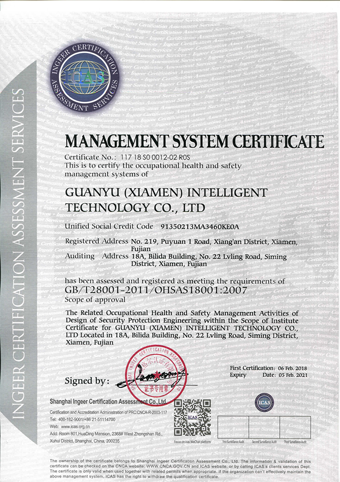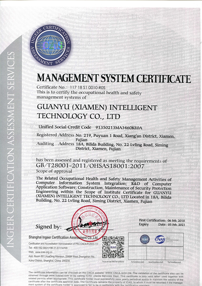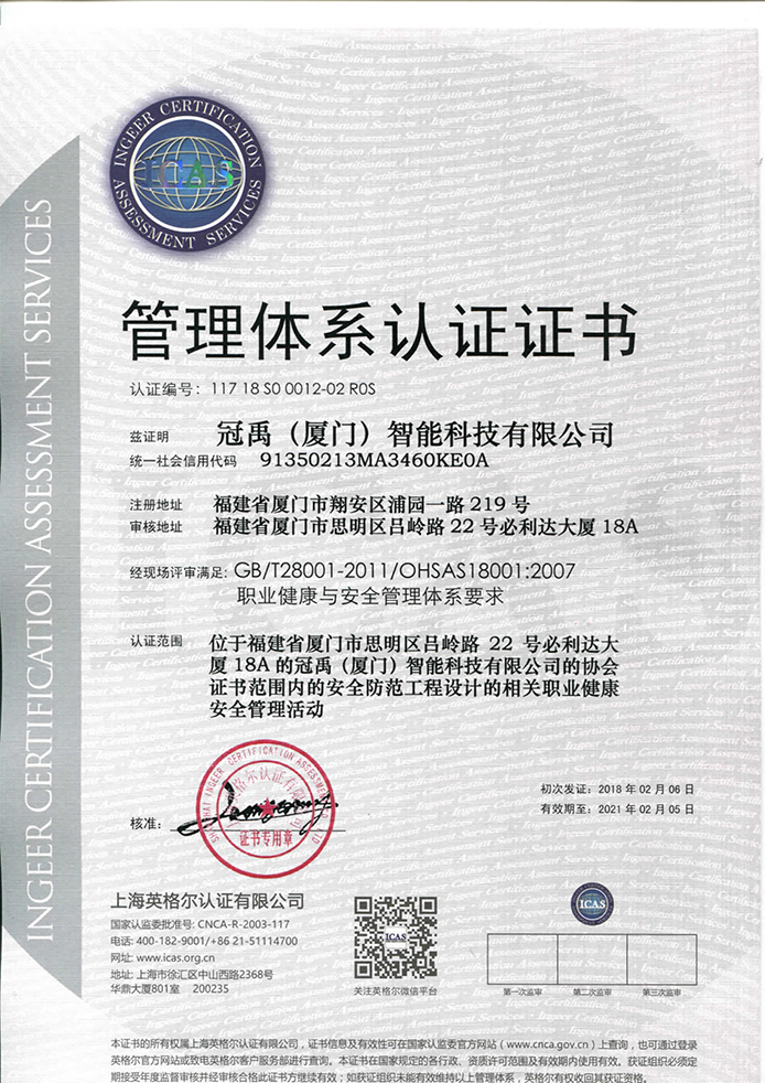 職業(yè)健康安全管理體系認證證書1