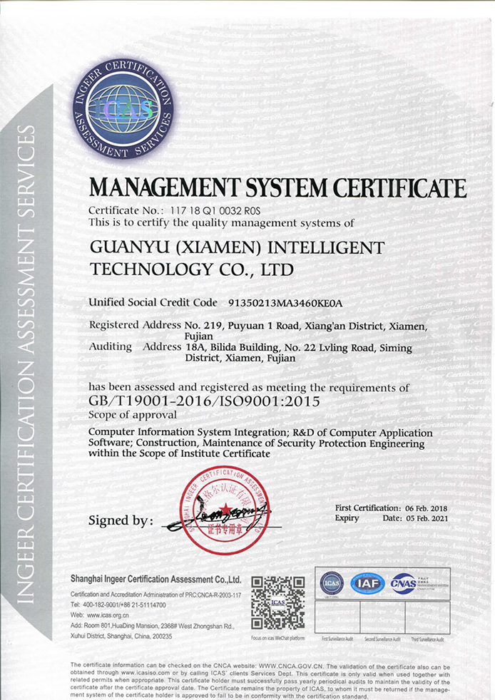 質量管理體系認證證書1