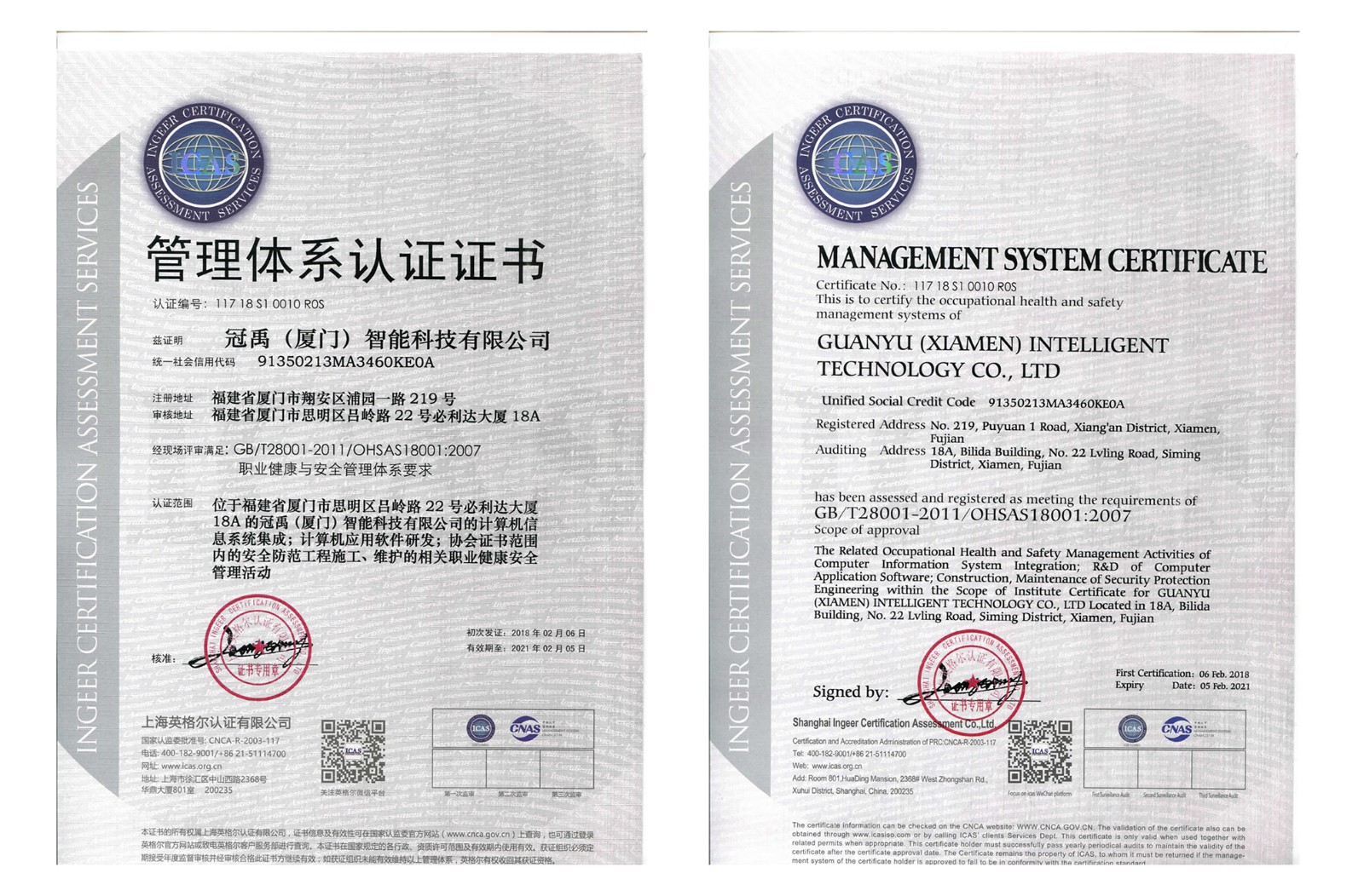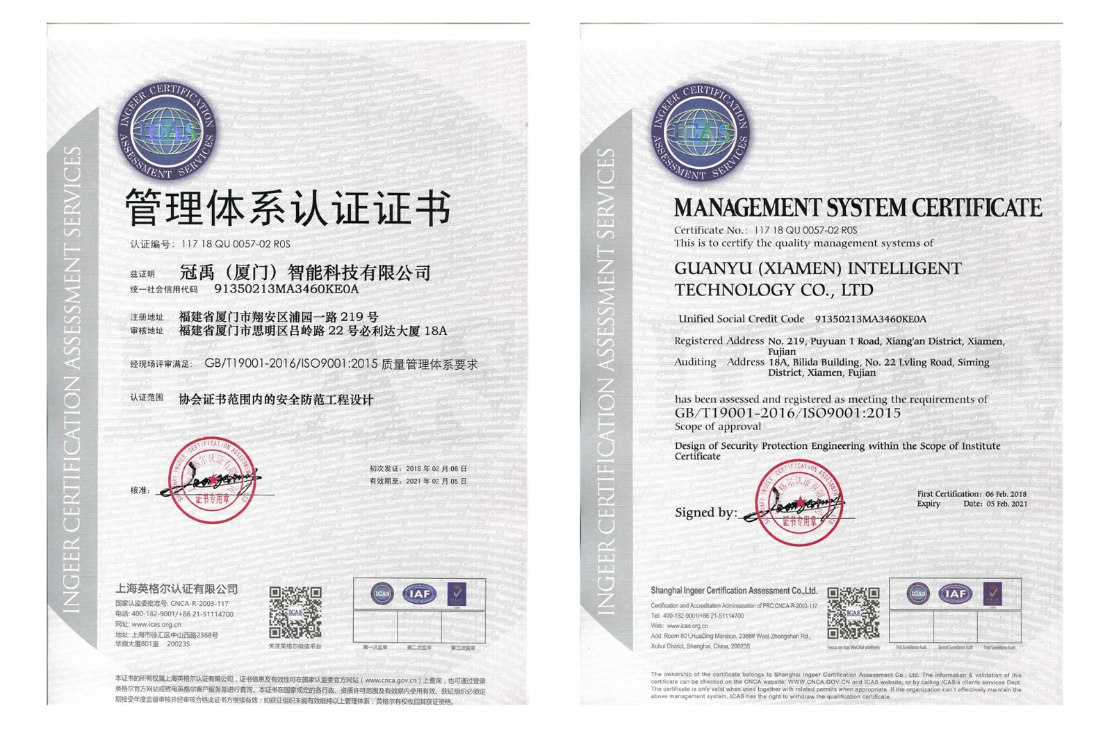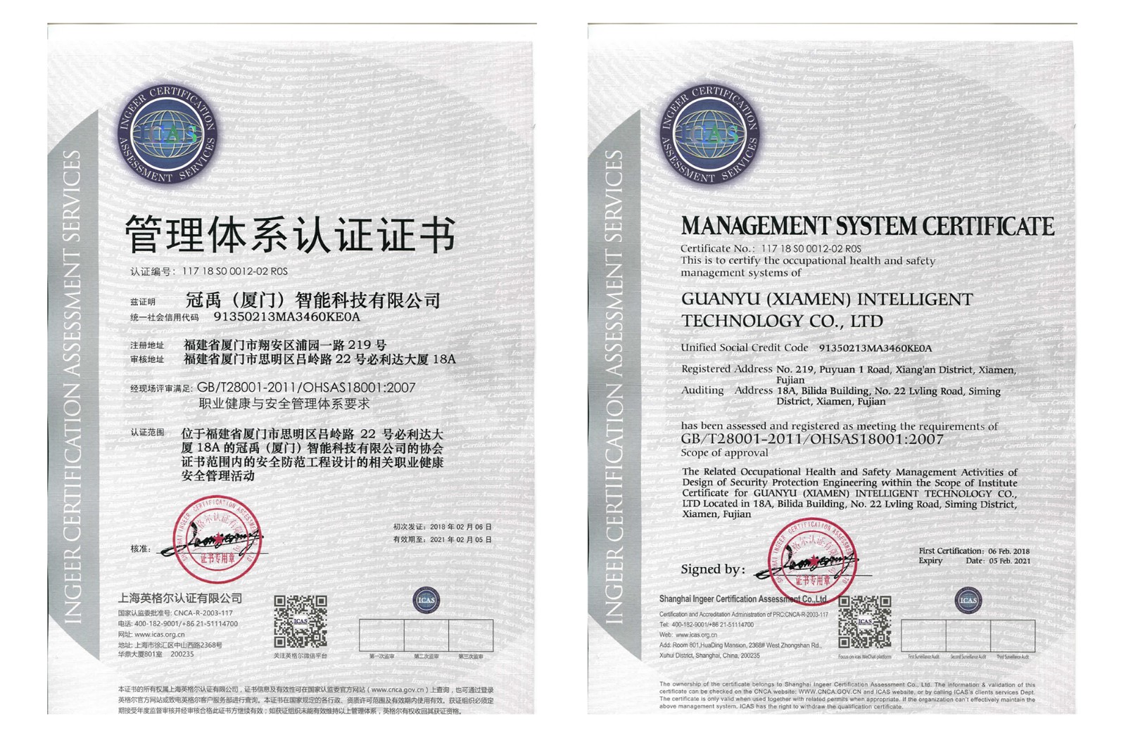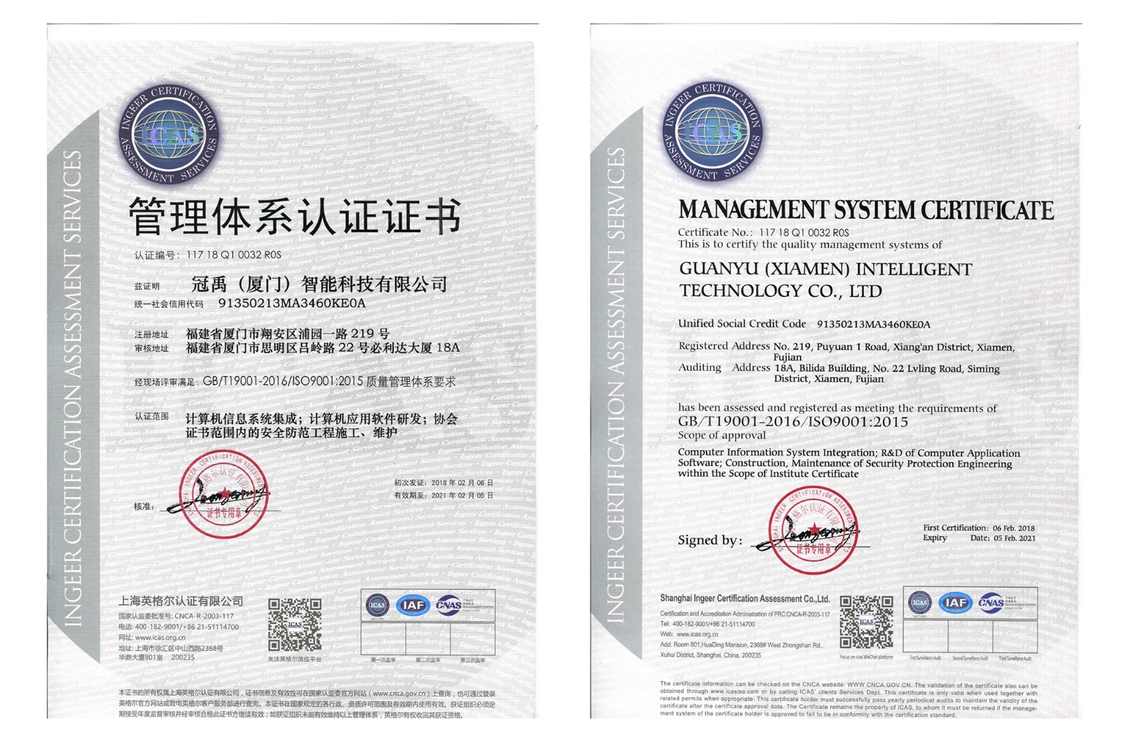 本次認(rèn)證公告的發(fā)布,標(biāo)志著我公司質(zhì)量管理、職業(yè)健康與安全管理全面通過(guò)雙體系認(rèn)證,這證明冠禹(廈門(mén))智能科技有限公司的計(jì)算機(jī)信息系統(tǒng)集成、計(jì)算機(jī)應(yīng)用軟件研發(fā)、安全防范工程設(shè)計(jì)、施工、維護(hù)的管理制度、技術(shù)力量經(jīng)受住了“史上較嚴(yán) 雙體系 ”的認(rèn)證大考,標(biāo)志著冠禹(廈門(mén))智能科技有限公司質(zhì)量體系、職業(yè)健康與安全體系水平達(dá)到了國(guó)家規(guī)定的新標(biāo)準(zhǔn),為企業(yè)在當(dāng)前激烈的市場(chǎng)競(jìng)爭(zhēng)中贏得了機(jī)會(huì),更為企業(yè)快速發(fā)展打下了堅(jiān)實(shí)基礎(chǔ)。
